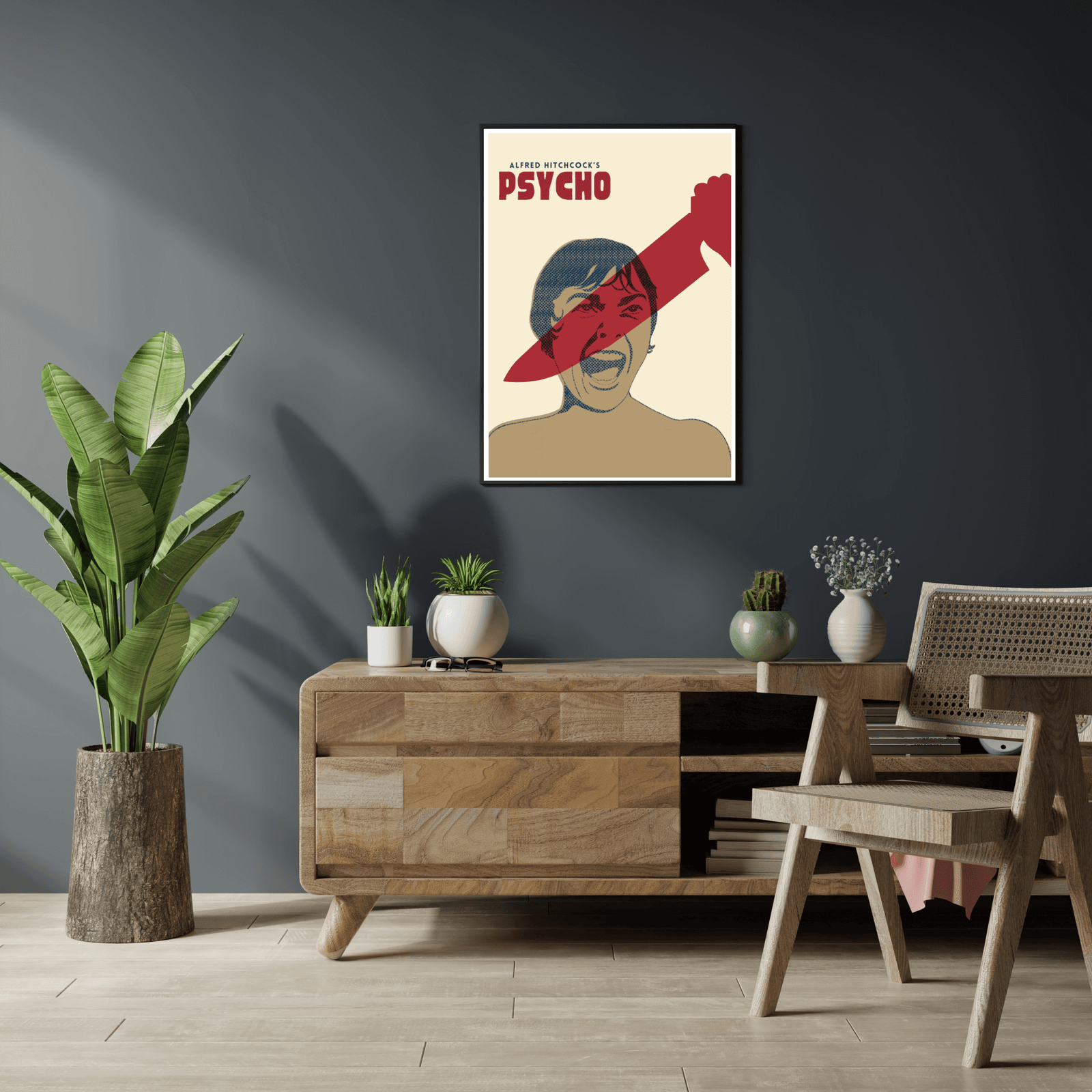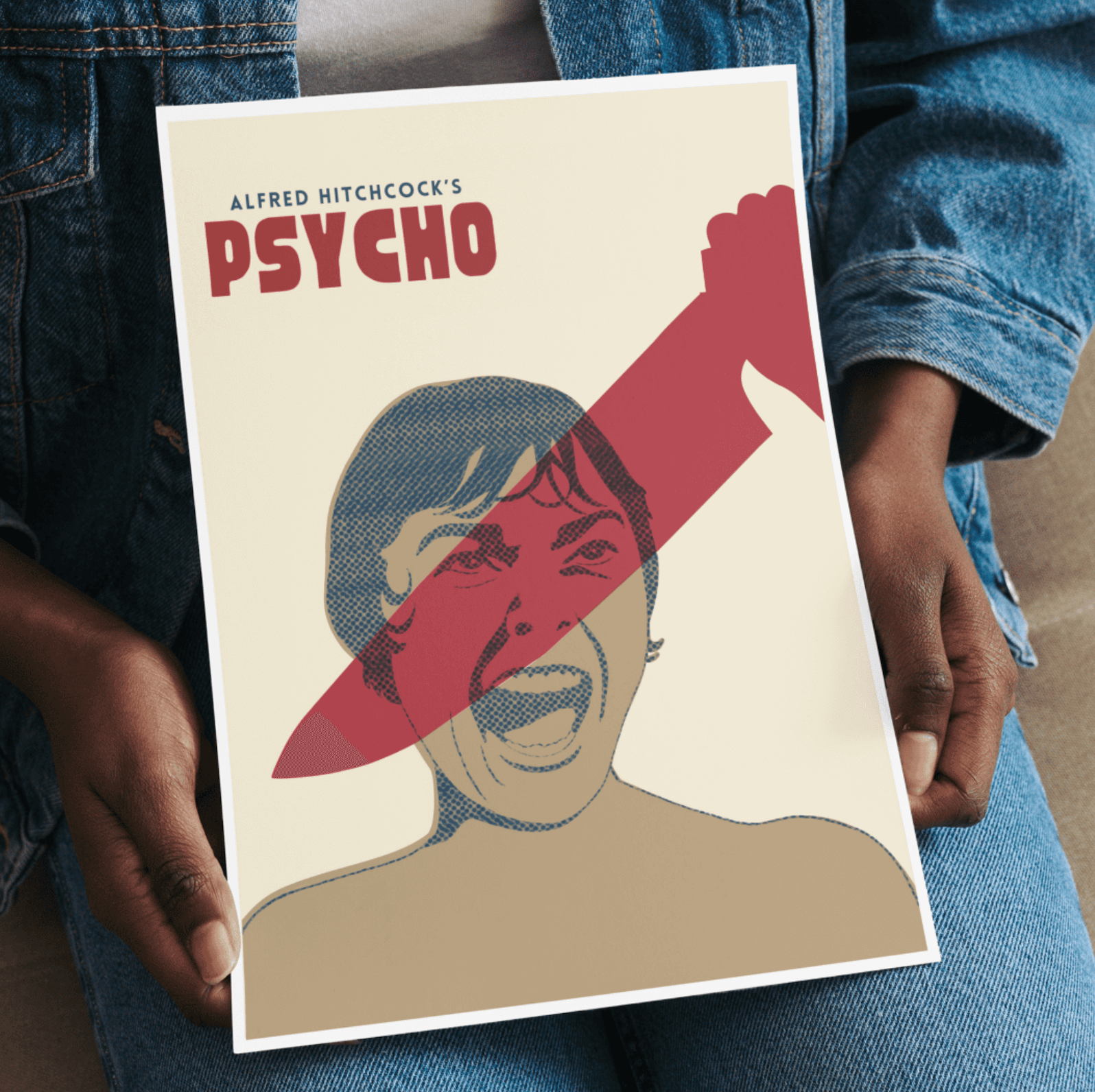 “Psycho” es icónica por varias razones. Primero, su innovador giro argumental y el infame asesinato en la ducha, que rompió con las convenciones del cine de terror de la época. Además, la dirección de Alfred Hitchcock y su uso magistral del suspenso, la música inquietante de Bernard Herrmann, y la impresionante actuación de Anthony Perkins y Janet Leigh, todos contribuyen a su estatus de clásico. La película no solo cambió el género del terror, sino que también estableció nuevos estándares para el cine de suspenso y terror. El póster retrata el ya mensionado asesinato en la ducha, escena que ha inspirado sin lugar a dudas todas las slashers y películas de terror que le siguieron.